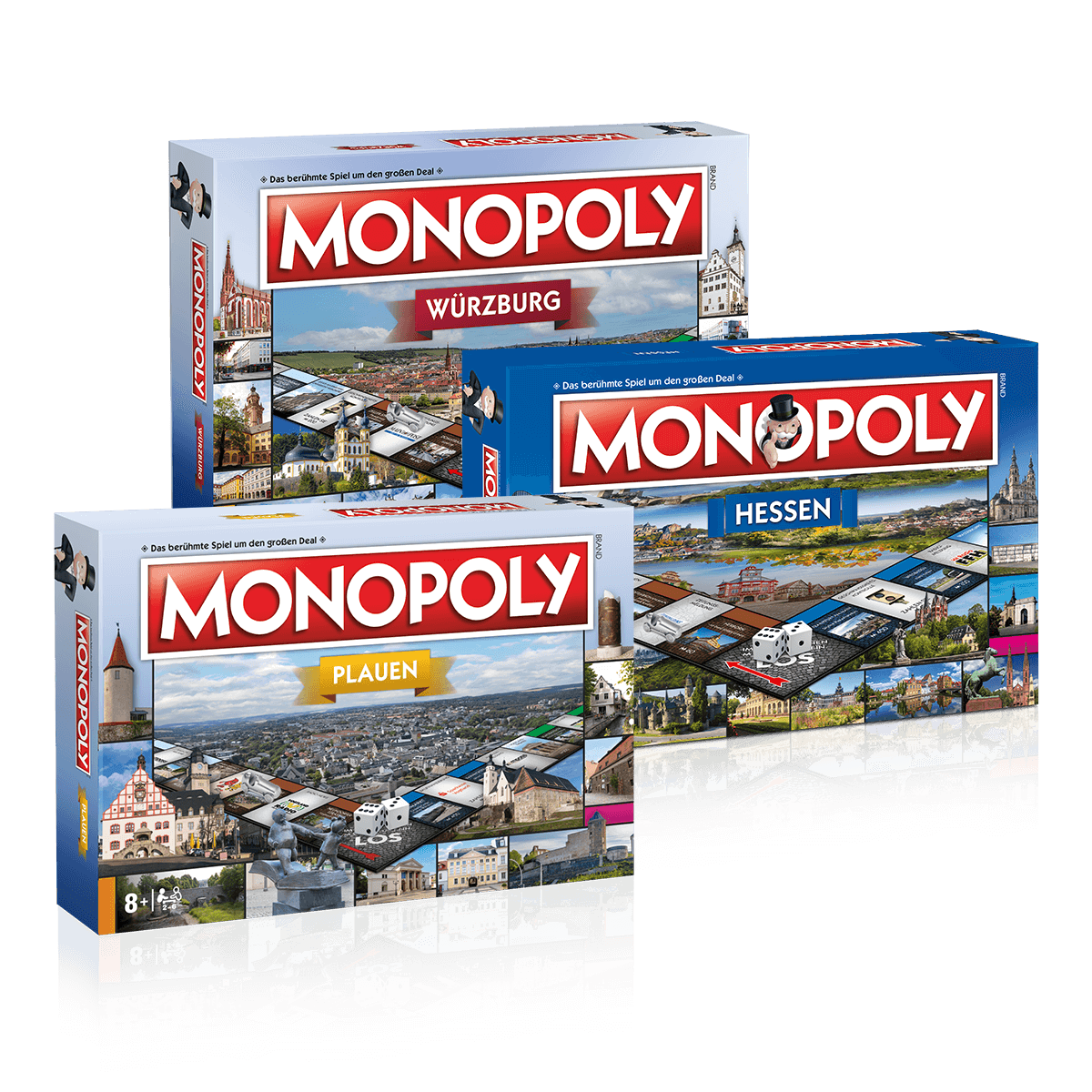 Egal ob Dresden, Leipzig, Würzburg oder Schwerin. Alle diese Städte haben von uns ihre eigene Monopoly-Edition erhalten. Und jedes Jahr werden es mehr! Mit viel Liebe zum Detail verwandeln wir leere Spielbretter in aufwändige Miniaturausgaben echter Städte und Regionen in ganz Deutschland.