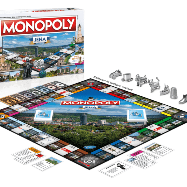 Das Kultspiel Monopoly in der Jena-Version. Entdecke die Lichtstadt ganz neu und spiele dich durch die Straßen und Plätze Jenas.