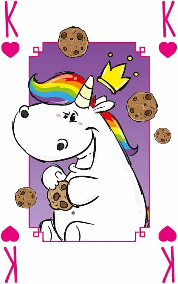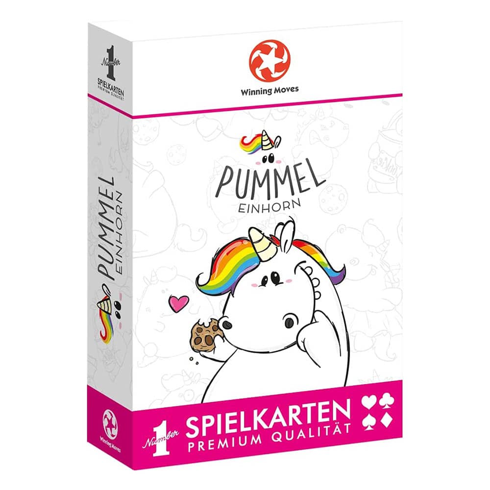 NUMMER 1 SPIELKARTEN PUMMELEINHORN Locker bleiben, weiter glitzern! Mit den Pummeleinhorn Spielkarten von Winning Moves wird jedes Kartenspiel zu einem ganz besonders flauschtastischen Vergnügen! Denn keiner lebt und liebt das Leben mehr als das glückliche Pummeleinhorn und seine bunten Freunde. Mit Naschbrettbauch und ganz viel regenbogenfarbener Liebe machen Poker, Skat, MauMau und andere Kartenspiele gleich viel mehr Spaß!